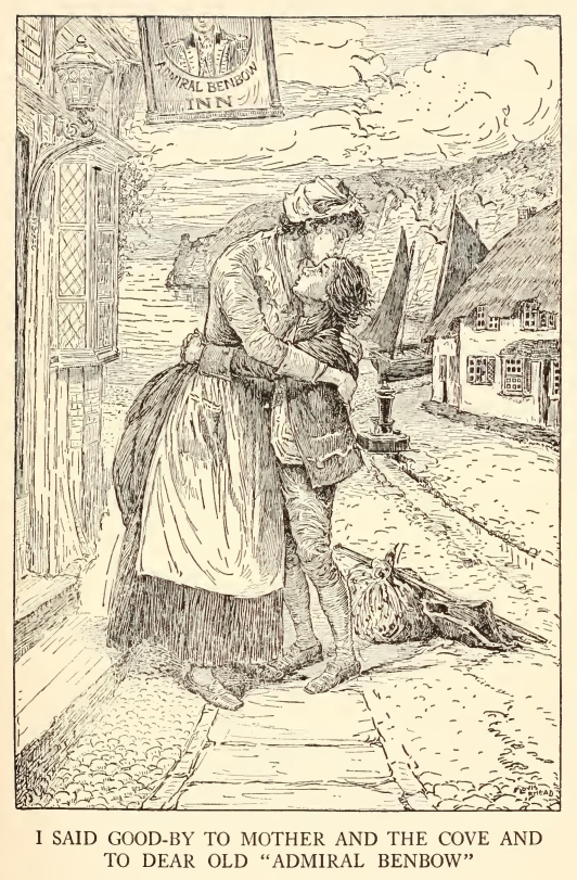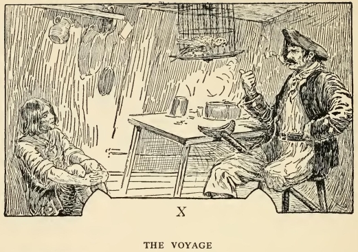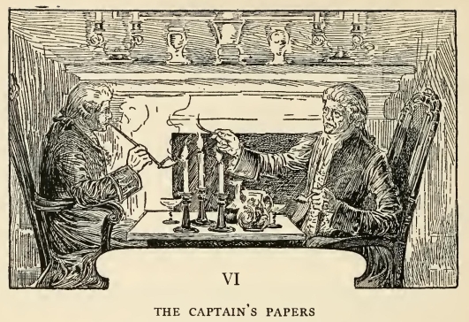 一月のある朝、非常に早い時間だった。身を切るような、霜の降りる朝で、入り江は白霜で一面灰色になり、さざ波が静かに石に打ち寄せ、太陽はまだ低く、丘の頂を照らし、はるか沖まで輝いているだけだった。船長はいつもより早く起き、浜辺へと下りていった。古い青い上着の広い裾の下でカトラスを揺らし、真鍮の望遠鏡を脇に抱え、帽子を後ろに傾けていた。彼が闊歩していくと、その吐く息が煙のように後に残り、大きな岩を曲がる彼から聞こえた最後の音は、まるでまだライブシー博士のことで頭がいっぱいであるかのような、憤慨した大きな鼻息だったのを覚えている。