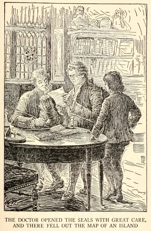 トレローニー郷士、ライブシー博士、そして紳士方が、私に宝島についての一部始終を書き記すよう求められた。島の場所を除いては、何一つ隠すことなく。島の場所を伏せるのは、未だ引き上げられていない宝がそこに眠っているからに他ならない。私は、神の恵み深き西暦一七――年にペンを取り、父が「ベンボー提督亭」を営んでいたあの頃、そして、顔に刀傷のある日に焼けた年老いた船乗りが、初めて我々の宿に腰を落ち着けたあの時に、立ち返ることにする。