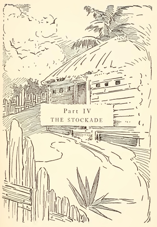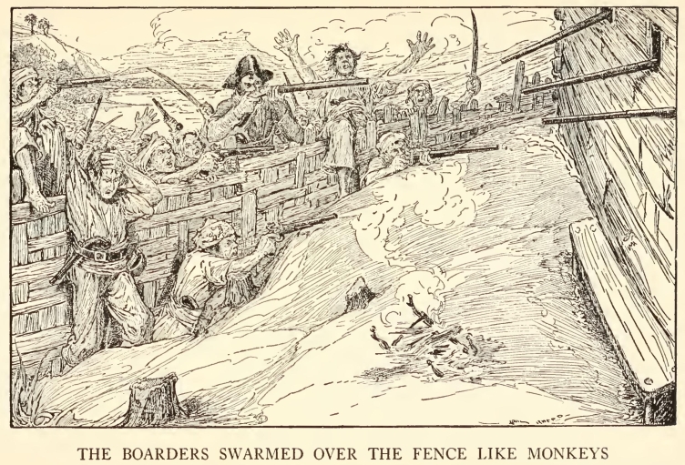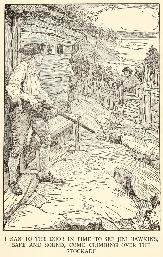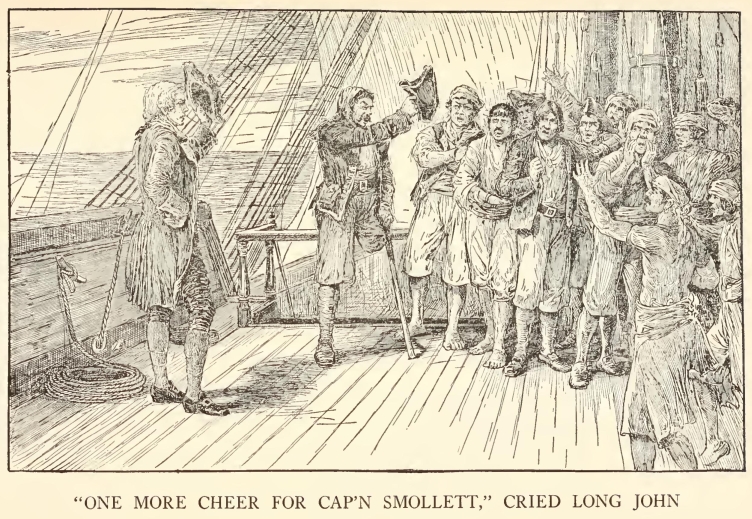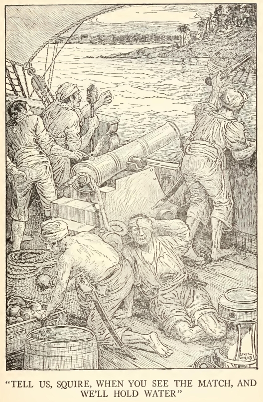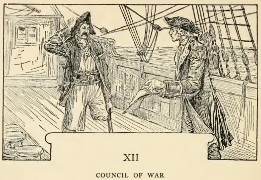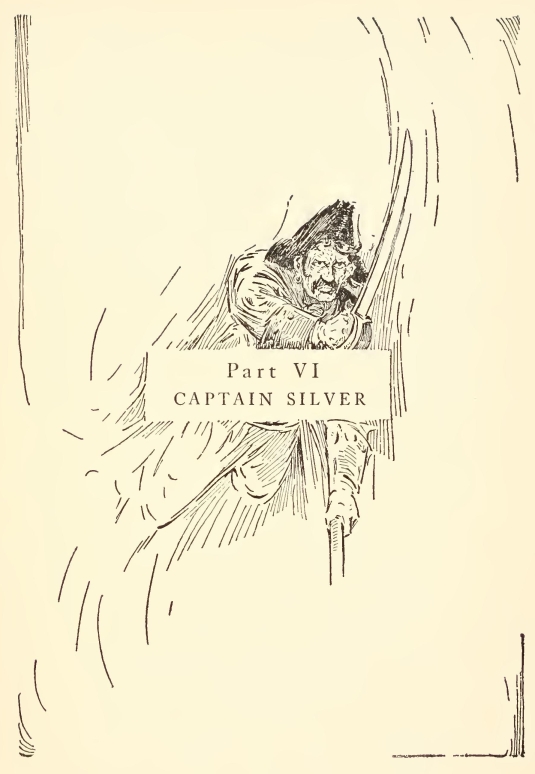 「ジム」と、二人きりになるとシルバーは言った。「俺がおめえの命を救ったなら、おめえは俺の命を救った。その恩は忘れねえ。博士がおめえに逃げろと手招きしてるのを、この目で見た。そしておめえが断るのも、はっきりと聞こえるようだったぜ。ジム、こいつはおめえに一本取られたな。襲撃が失敗してから初めて見えた一筋の希望だ。これもみんなおめえのおかげだ。そして今、ジム、俺たちはこれから宝探しに出かけるわけだが、封印命令付きと来たもんだ。こいつは気に入らねえ。おめえと俺は、背中合わせでぴったりくっついてなきゃならねえ。そして、運命や幸運なんかに逆らってでも、俺たちの首を守り抜くんだ。」