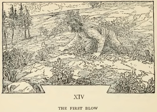 ついにメリーは、演説が事態を打開するかもしれないと考えたようだった。 「仲間たち」と彼は言う。「向こうには二人きりだ。一人は、俺たち全員をここまで連れてきて、こんな無様な目に遭わせた老いぼれの片輪。もう一人は、俺が心臓をえぐり出してやろうと思ってる、あの小僧だ。さあ、仲間たち――」 彼は腕と声を振り上げ、明らかに突撃を率いるつもりだった。しかし、まさにその時――パン! パン! パン! ――三発のマスケット銃の銃声が茂みから閃いた。メリーは頭から穴の中に転落した。包帯の男は独楽のようにくるりと回り、横ざまにばったりと倒れた。彼は死んでいたが、体はまだ痙攣していた。そして、残りの三人は向きを変え、死に物狂いで逃げ出した。