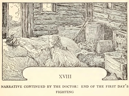 その間、我々は船長を助けるためにどうすればいいか全く分からず、彼が見知らぬ男との乱闘で致命傷を負ったのだということ以外、何も考えられなかった。確かにラム酒を持ってきて、彼の喉に流し込もうとしたが、歯は固く食いしばられ、顎は鉄のように強かった。ドアが開き、ライブシー博士が父の往診に来てくれた時は、本当にほっとした。