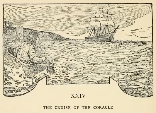 この時までに、俺たちはギグボートにたどり着いていた。博士はつるはしでそのうちの一艘を破壊し、それから俺たちは全員でもう一艘に乗り込み、海路で北の入り江を目指して出発した。 八、九マイルの道のりだった。シルバーは、すでに疲労で死にそうだったが、俺たちと同じようにオールを漕がされ、俺たちはすぐに穏やかな海上を滑るように進んだ。まもなく俺たちは海峡を抜け、島の南東の角を回った。四日前、俺たちがヒスパニオラ号を曳航した場所だ。