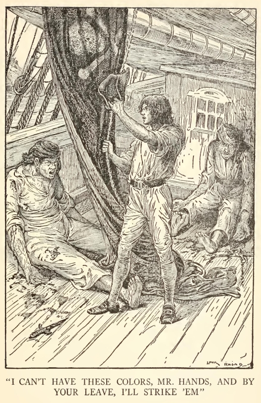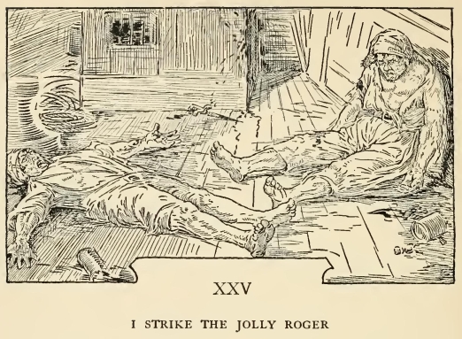 ここで僕は泣き始めたことを白状しよう。「博士」僕は言った。「どうか勘弁してください。僕はもう十分に自分を責めました。どうせ僕の命は失われたも同然で、シルバーが僕をかばってくれなければ、今頃は死んでいたはずです。そして博士、信じてください、僕は死ぬ覚悟はできています――そして、当然の報いだと思います――でも、僕が恐れているのは拷問です。もし彼らが僕を拷問にかけたら――」