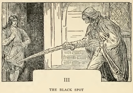 「よろしい」と彼は言った。「なら、ここは俺の寝床だ。おい、そこのお前」手押し車を引いてきた男に彼は叫んだ。「こっちへ寄せて、箱を運び込むのを手伝え。しばらくここに厄介になる」彼は続けた。「俺は単純な男でな。ラム酒とベーコンエッグがあればいい。あとは、あそこの岬から船を見張れればな。俺の名前か? 船長とでも呼んでくれ。おっと、お前さんが何を考えてるか分かるぞ――ほらよ」。そう言って、彼は三、四枚の金貨を敷居に投げ捨てた。「これが無くなる頃に教えてくれりゃいい」と、司令官のような険しい顔つきで言った。