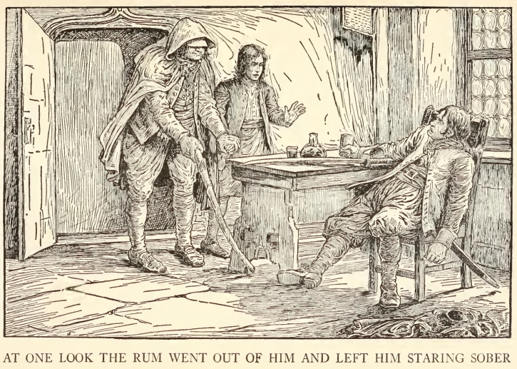 さて、母は二階で父の看病をしており、私は船長が戻ってくるのに備えて朝食のテーブルを準備していた。その時、談話室のドアが開き、一人の男が入ってきた。これまで一度も目にしたことのない男だった。青白く、獣脂のような顔色をした男で、左手の指が二本欠けていた。カトラスを身につけてはいたが、とても戦士には見えなかった。私はいつも一本足であれ二本足であれ、船乗りに目を光らせていたが、この男には戸惑ったのを覚えている。船乗りらしくはないが、どこか海の香りがした。
