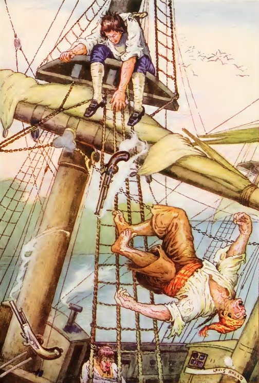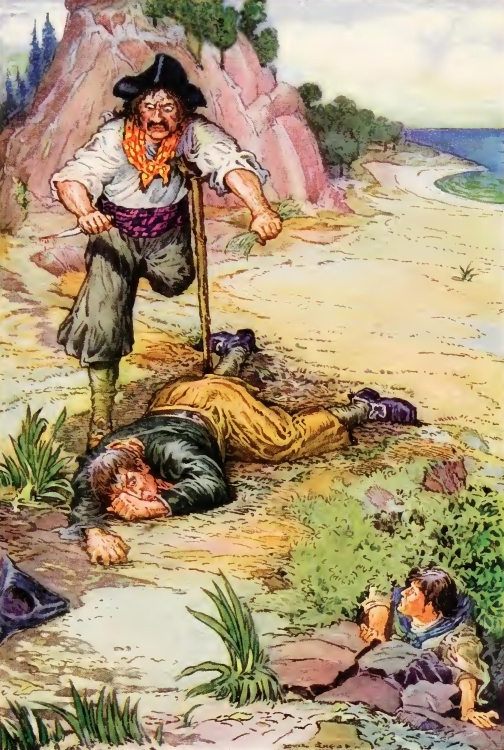 瞬きする間もなく、ロング・ジョンはもがいているメリーにピストルの二つの銃身から弾を撃ち込んでいた。男が断末魔の苦しみの中で彼を見上げた時、「ジョージ」と彼は言った。「これで決着だな。」 その瞬間、博士とグレイ、そしてベン・ガンが、まだ煙を吹くマスケット銃を手に、ニクズクの木々の間から俺たちに合流した。