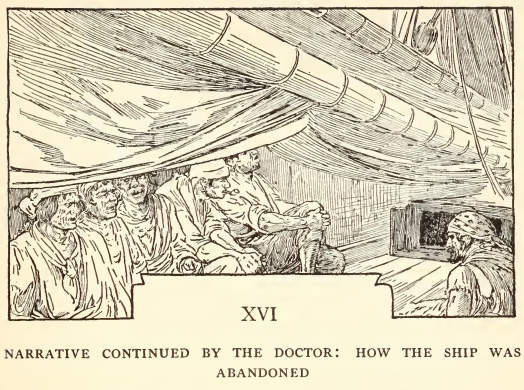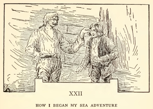 ここで僕は泣き始めたことを白状しよう。「博士」僕は言った。「どうか勘弁してください。僕はもう十分に自分を責めました。どうせ僕の命は失われたも同然で、シルバーが僕をかばってくれなければ、今頃は死んでいたはずです。そして博士、信じてください、僕は死ぬ覚悟はできています――そして、当然の報いだと思います――でも、僕が恐れているのは拷問です。もし彼らが僕を拷問にかけたら――」