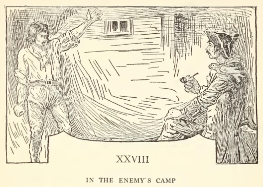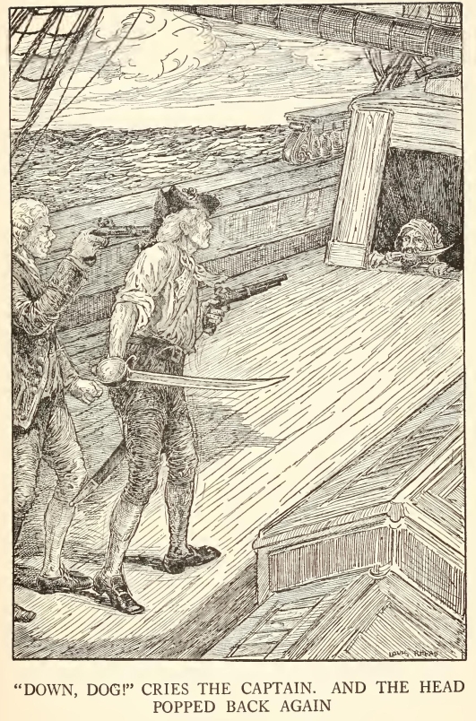それから二人の間で睨み合いが続いたが、すぐに船長の方が折れ、武器をしまい、打ち負かされた犬のようにうなりながら席に戻った。