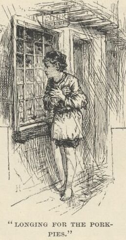 ある一月の日、いつもの物乞いの道すがら、彼はミンシング横丁とリトル・イーストチープ界隈を、何時間も、裸足で寒さに震えながら、しょんぼりと歩き回っていた。料理屋の窓を覗き込み、そこに並べられたひどいポークパイやその他の命取りになりそうな代物を渇望していた――彼にとって、それらは天使にふさわしいご馳走だったのだ。少なくとも、匂いから判断する限りはそうだった。というのも、彼はそれを手に入れて食べた幸運に一度も恵まれたことがなかったからだ。冷たい霧雨が降っていた。空はどんよりと曇り、憂鬱な一日だった。夜、トムが家にたどり着いたとき、彼はあまりに濡れ、疲れ、腹を空かせていたので、父親と祖母も彼の哀れな有様を見て心を動かされないわけにはいかなかった――彼らなりのやり方で。それゆえ、彼らはすぐさまトムをひっぱたき、寝床へ追いやった。長い間、痛みと飢え、そして建物の中で続く罵り合いと喧嘩のせいで、彼は眠れなかった。しかし、やがて彼の思考は遠いロマンチックな国々へと漂い、広大な宮殿に住み、目の前で平伏したり、命令を遂行するために飛び回ったりする召使いを持つ、宝石と金で飾られた王子たちに囲まれて眠りに落ちた。そして、いつものように、彼自身が王子である夢を見た。