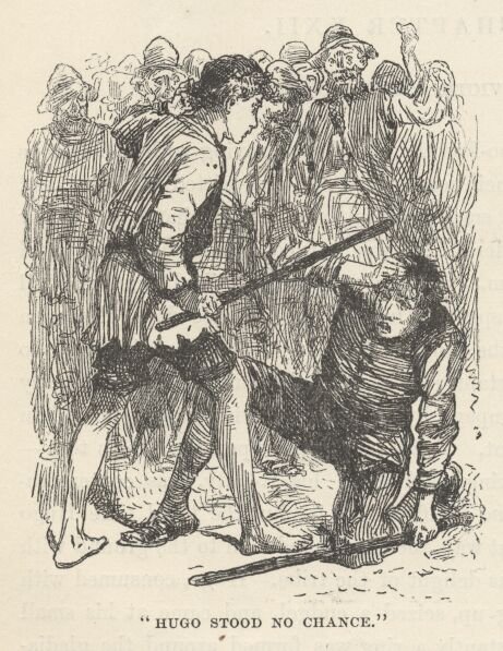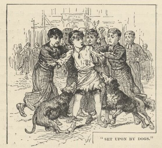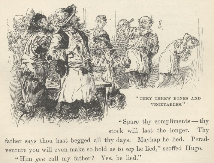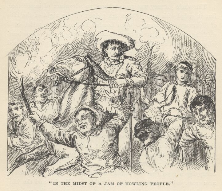 ここで、嘲笑する群衆が哀れな小さな王子の周りに集まり、彼を道のずっと先まで押しやり、野次を飛ばし、叫んだ。