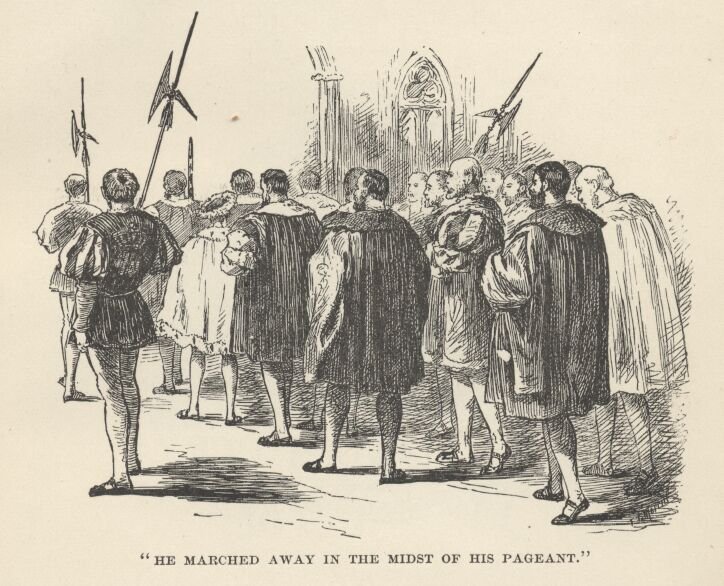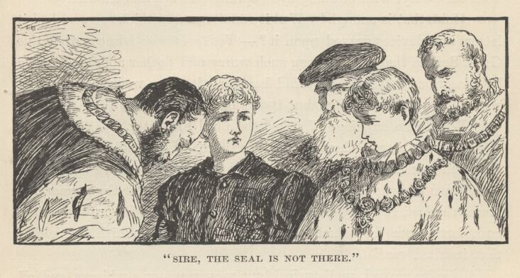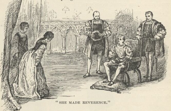 マイルズ・ヘンドンとトム・キャンティは、その短い治世を通じて王のお気に入りであり、王が亡くなったときには心からの弔問者となった。善良なケント伯爵は、その特異な特権を濫用するほど分別がなかった。しかし、我々が目にした例の後、この世を去るまでに二度、それを行使した――一度はメアリー女王の即位の際に、そしてもう一度はエリザベス女王の即位の際である。彼の子孫の一人がジェームズ一世の即位の際にそれを行使した。その息子が特権を使おうとする前に、四半世紀近くが経過し、「ケント家の特権」はほとんどの人々の記憶から薄れていた。そのため、その時代のケント家当主がチャールズ一世とその宮廷の前に現れ、一族の権利を主張し永続させるために国王の御前で着席したときには、実にたいそうな騒ぎとなった! しかし、事態はすぐに説明され、権利は確認された。この家系の最後の伯爵は、国王のために戦った共和制時代の戦争で戦死し、その奇妙な特権も彼と共に終わった。