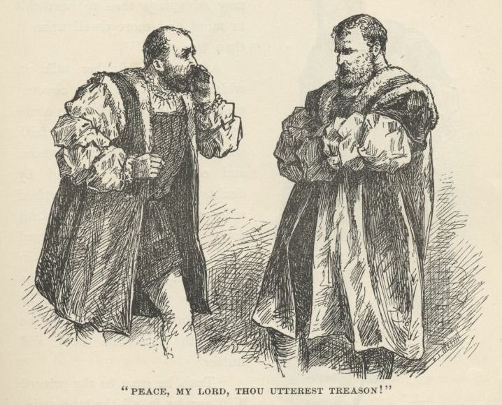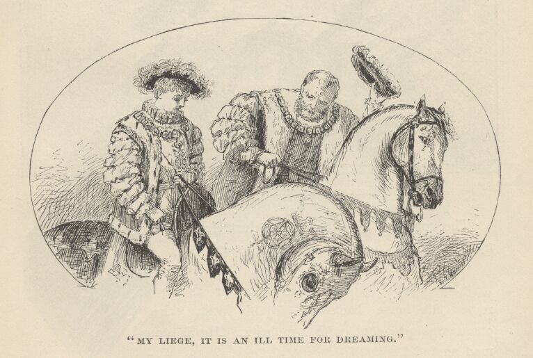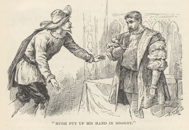 さて、王はサー・ヒューを見つけ、怒りに満ちた声と燃えるような目で言った――