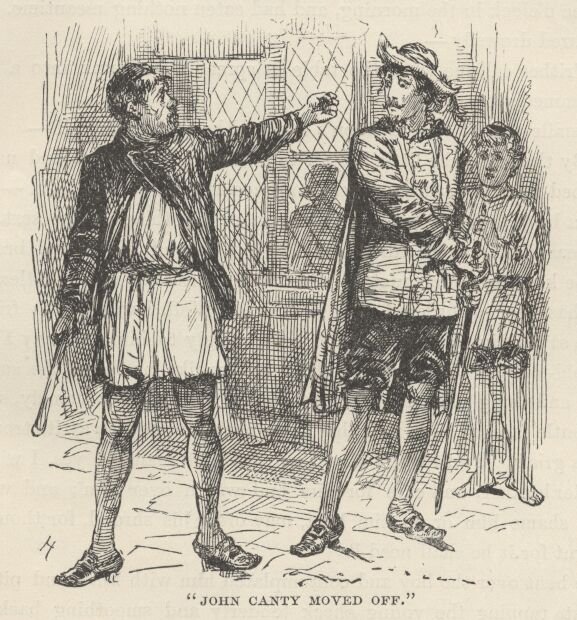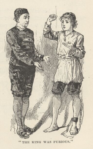 誇りと喜びに満ちたトム・キャンティは立ち上がって王の手に口づけをし、御前から退出した。彼は少しも時間を無駄にせず、母のもとへ飛んで帰り、母とナンとベットにすべてを語り、この素晴らしい知らせを共に喜んでもらうのだった。