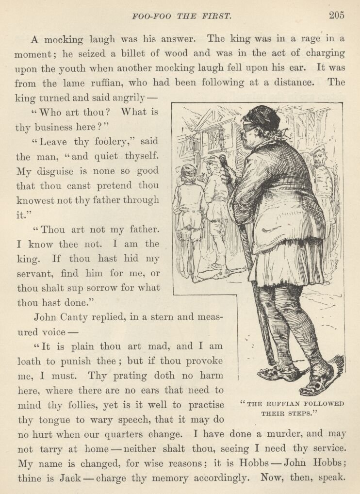 「またもや新たな王位僭称者か!」と士官は叫んだ。「まこと、近頃はウサギのように湧いてきおる。この悪党を捕らえよ、者ども。この貴重な紙を中に運び、王にお届けする間、しっかりと見張っておけ。」