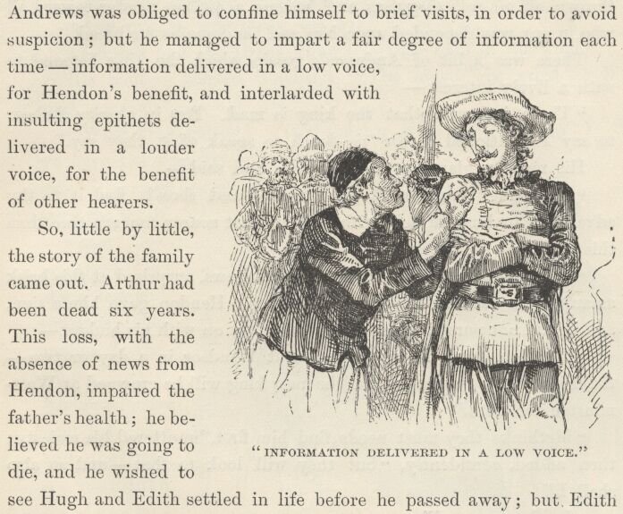「これでとうとう俺の悪運も尽きたか」とヘンドンは呟いた。「あの書き付けのせいで、縄の端でぶら下がることになるのは間違いない。そうなれば、哀れな我が少年はどうなるのだ! ――ああ、それは良き神のみがご存じだ。」