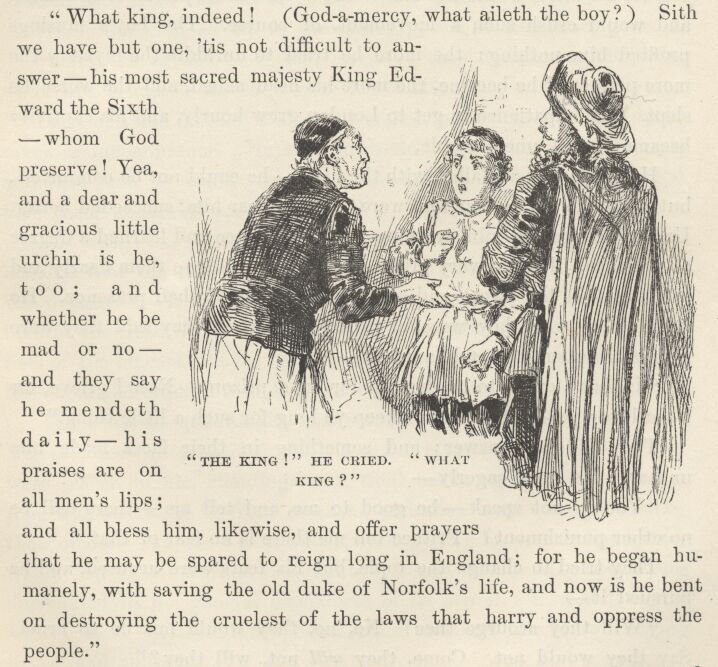 そう、エドワード六世王は、哀れな少年よ、わずか数年しか生きられなかったが、その人生を立派に生きた。一度ならず、ある高位高官、王冠に仕える金ぴかの家臣が、王の寛大さに異を唱え、王が改正しようとしているある法律はその目的のためには十分に穏やかであり、誰も大して気にする必要のない苦しみや抑圧をもたらすものではない、と主張したとき、若き王は、その大きな慈悲深い瞳の悲しげな雄弁さを彼に向け、こう答えた――