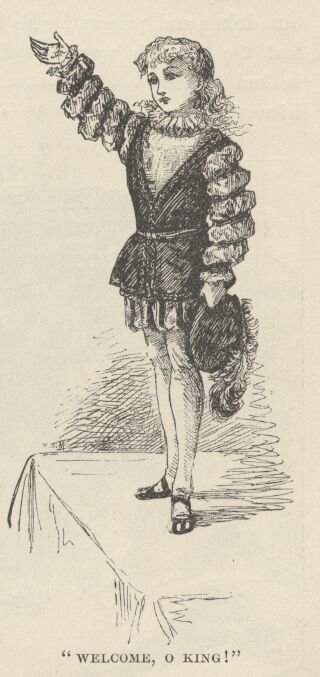 「おお、そなたも望むか? ならばそうしよう。そのぼろを脱ぎ、このきらびやかな服を着るがよい、少年よ! 束の間の幸せだが、それゆえに喜びもひとしおであろう。できるうちに楽しみ、誰かが邪魔しに来る前にまた着替えようではないか。」