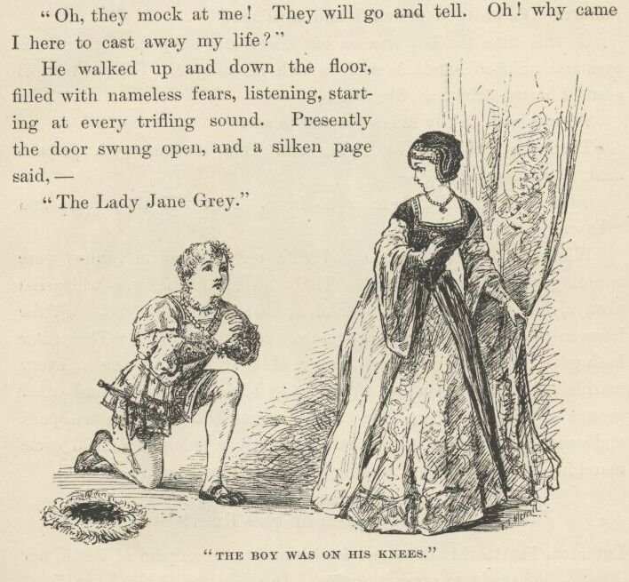 「我が姉、エリザベス王女は十四歳、そして我が従姉妹、ジェーン・グレイ夫人は我と同い年で、美しく優雅である。しかし我が姉、メアリー王女は、あの陰鬱な表情と――おい、そなたの姉たちは、罪が魂を滅ぼすのを恐れて、召使いたちに微笑むことを禁じたりするか?」