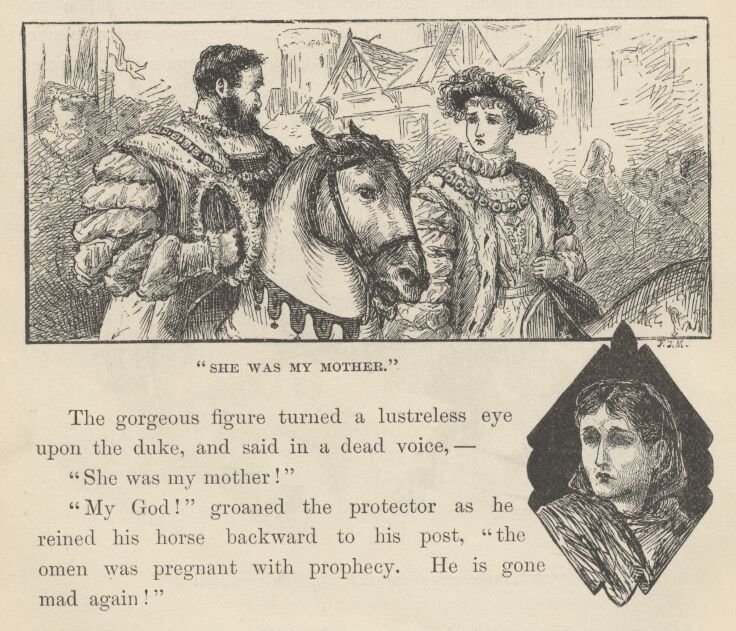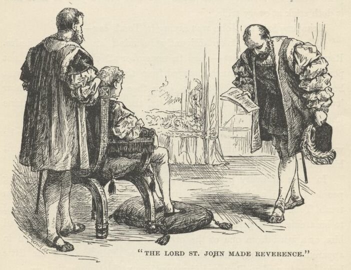 マイルズ・ヘンドンとトム・キャンティは、その短い治世を通じて王のお気に入りであり、王が亡くなったときには心からの弔問者となった。善良なケント伯爵は、その特異な特権を濫用するほど分別がなかった。しかし、我々が目にした例の後、この世を去るまでに二度、それを行使した――一度はメアリー女王の即位の際に、そしてもう一度はエリザベス女王の即位の際である。彼の子孫の一人がジェームズ一世の即位の際にそれを行使した。その息子が特権を使おうとする前に、四半世紀近くが経過し、「ケント家の特権」はほとんどの人々の記憶から薄れていた。そのため、その時代のケント家当主がチャールズ一世とその宮廷の前に現れ、一族の権利を主張し永続させるために国王の御前で着席したときには、実にたいそうな騒ぎとなった! しかし、事態はすぐに説明され、権利は確認された。この家系の最後の伯爵は、国王のために戦った共和制時代の戦争で戦死し、その奇妙な特権も彼と共に終わった。