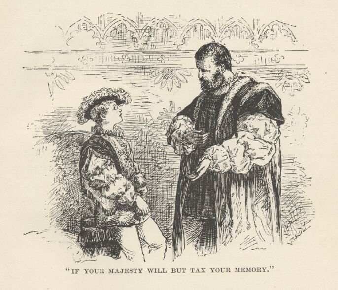 「なんと古風で、素晴らしい考えだ! すまぬ、笑うつもりはなかった。だが、そなたの善良なナンとベットには、間もなく十分な衣服と召使いを与えよう。我が財務官に申しつけておく。いや、礼は申すな。たいしたことではない。そなたは話し方が上手だな。物腰にも気楽な優雅さがある。学問はあるか?」