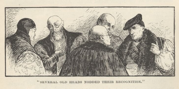 王は生きている限り、その冒険譚を語るのが好きだった。歩哨に宮殿の門から殴りつけられて追い払われた時から、最後の真夜中、急ぎ働く職人たちの群れに巧みに紛れ込み、そうして寺院に忍び込み、告解王の墓に登って隠れ、翌日あまりに長く眠りすぎたために、戴冠式をすんでのところで見逃すところだった話まで、すべてを語った。彼は、その貴重な教訓を頻繁に繰り返すことが、その教えを民の利益となるようにするという目的を強く保つ助けになると言った。そして、命ある限り、その物語を語り続け、それによってその悲痛な光景を記憶に新しく留め、その心にある憐れみの泉が枯れぬようにするのだ、と。