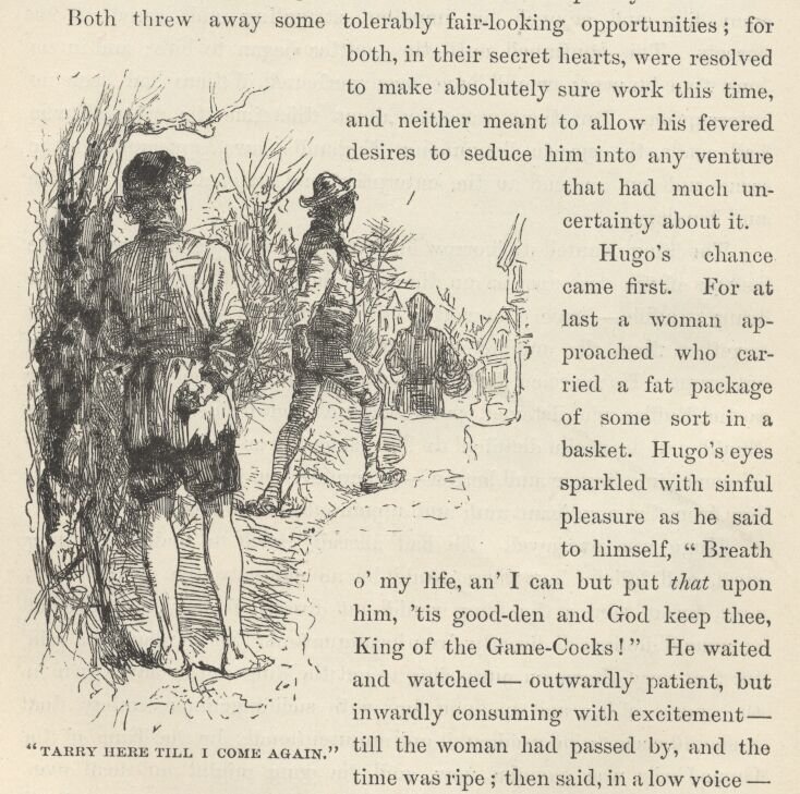 「これでとうとう俺の悪運も尽きたか」とヘンドンは呟いた。「あの書き付けのせいで、縄の端でぶら下がることになるのは間違いない。そうなれば、哀れな我が少年はどうなるのだ! ――ああ、それは良き神のみがご存じだ。」