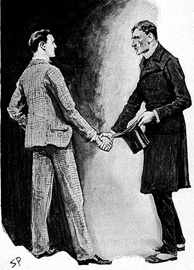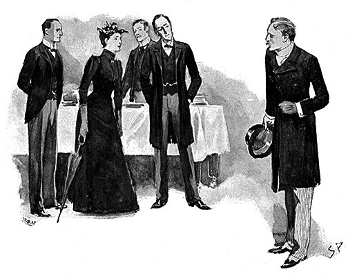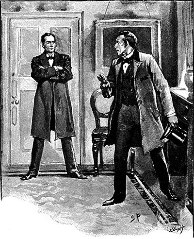 「どうぞおかけください」とホームズ。「こちらは友人であり同僚のワトソン博士。時おり私の事件を手伝ってくれている方です。さて、どちら様とお呼びすれば?」