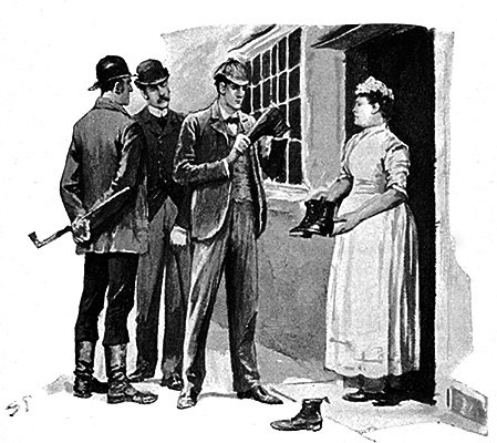 「おいおい、ホームズ、それはいくらなんでも度が過ぎてるよ。君はもし数世紀前に生まれていたら間違いなく火あぶりにされてたろう。確かに木曜に田舎道を歩いて、ひどい格好で帰ってきたが、着替えたあとでどうしてそれが分かるんだい。それにメアリー・ジェーンのことも、妻がすでに辞めさせることにしたけど、どうやって推理したんだ?」