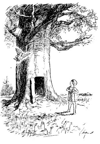 彼はハリエニシダの茂みから這い出し、鼻についたとげを払い落として、また考えはじめた。そして、まず最初に思い浮かべたのがクリストファー・ロビンだった。