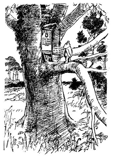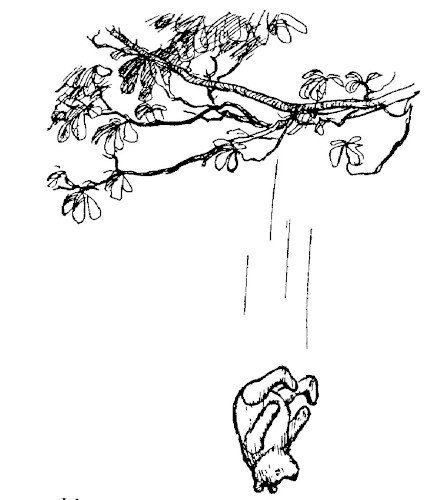 「おお、助けて!」とプーは言いながら、十フィート下の枝に落ちた。