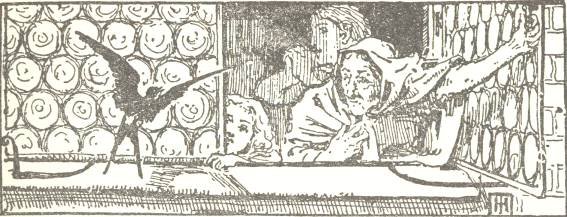 川の上を飛び過ぎると、船のマストにランタンが吊るされていた。ゲットーの上空を通ると、年老いたユダヤ人たちが互いに値切り合い、銅の秤でお金を量っているのが見えた。ついに貧しい家にたどり着き、中をのぞきこんだ。少年は熱にうなされてベッドで身をよじらせ、母親は疲れ切って眠り込んでいた。ツバメはそっと部屋に入り、ルビーを女性の指ぬきのそばのテーブルに置いた。それからベッドの周りを静かに飛び回って、羽で少年の額をあおいだ。「なんて涼しいんだろう」と少年は言った。「きっと良くなってきたんだ」そう言って、心地よい眠りに落ちた。